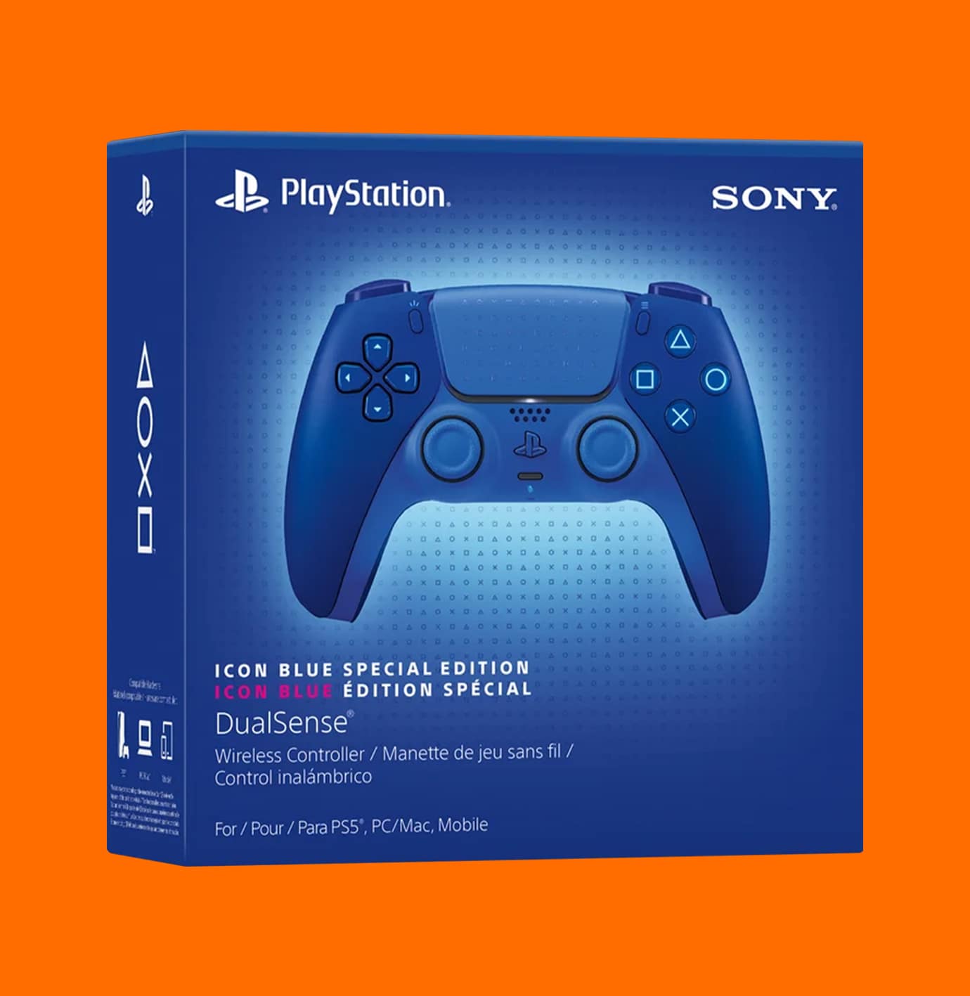 - Inspirado en el legado histórico de PlayStation, aquí tienes un primer vistazo al control inalámbrico DualSense, Icon Blue edición especial, que cuenta con tonos azules únicos en capas y un patrón brillante de formas de PlayStation en el panel táctil.